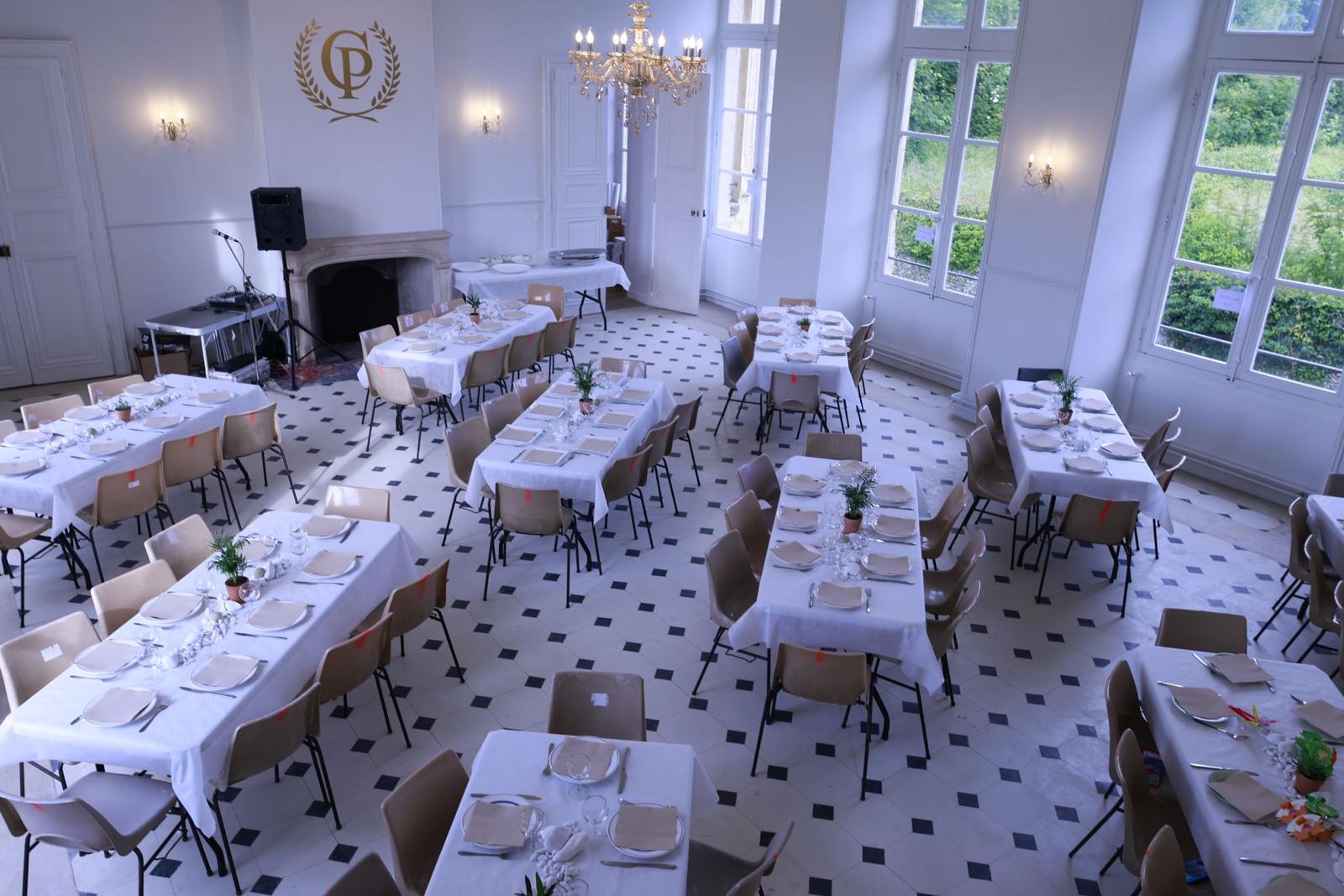 | Salle principale (90 m²) | 70 personnes assises | Tables, chaises, Napoléon, cuisine | Déco, sono |